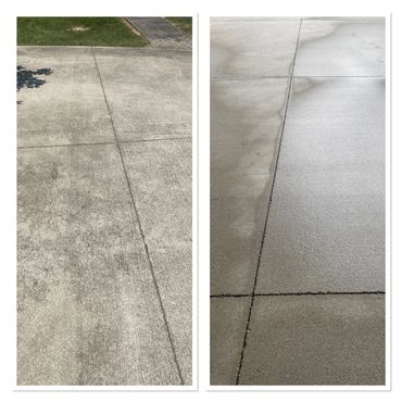 The process of removing dirt, grime, stains, and other buildup from a driveway's surface, typically a concrete or asphalt driveway